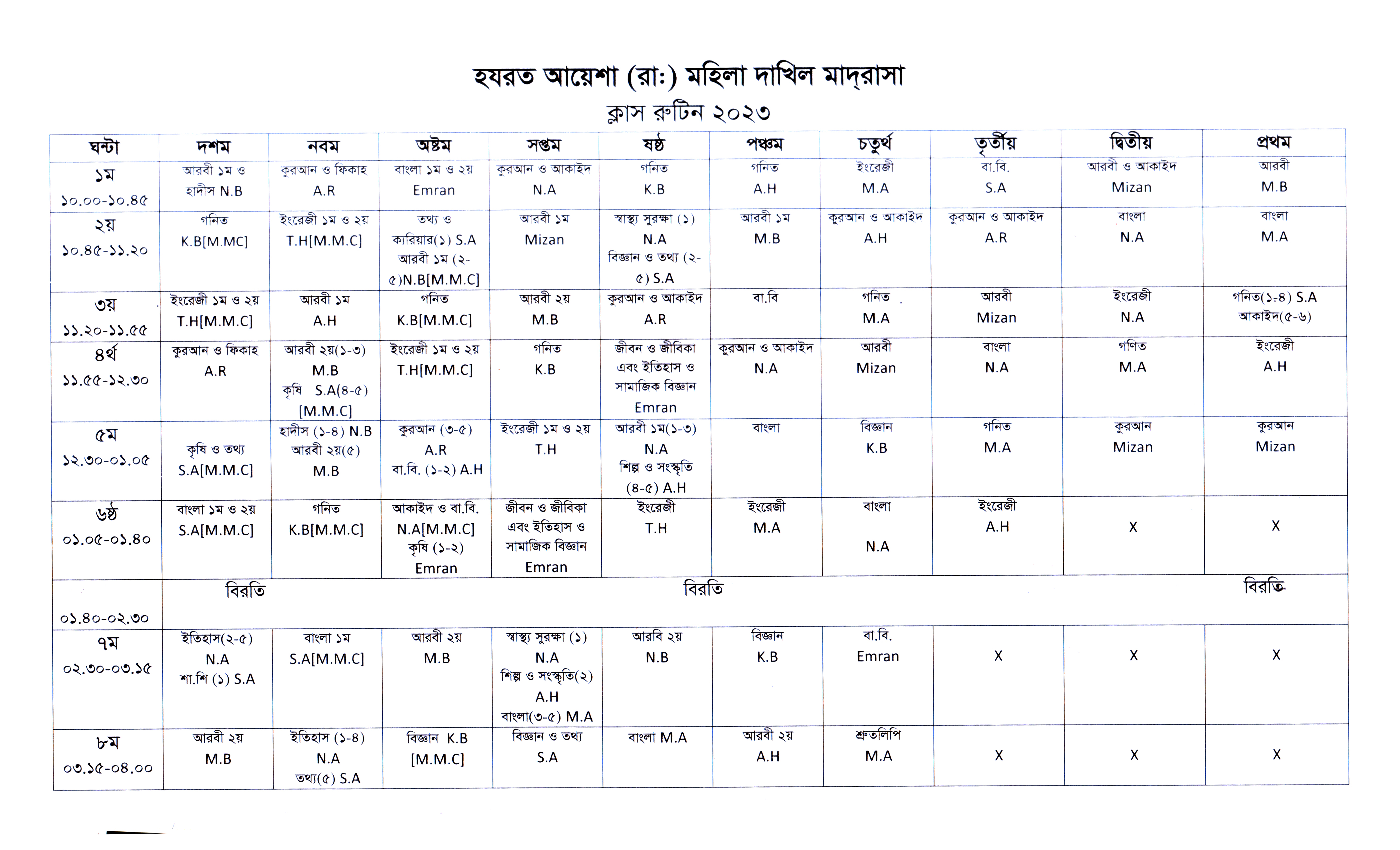 শ্রেণি ও লিংগ ভিত্তিক শিক্ষার্থীর তথ্য
