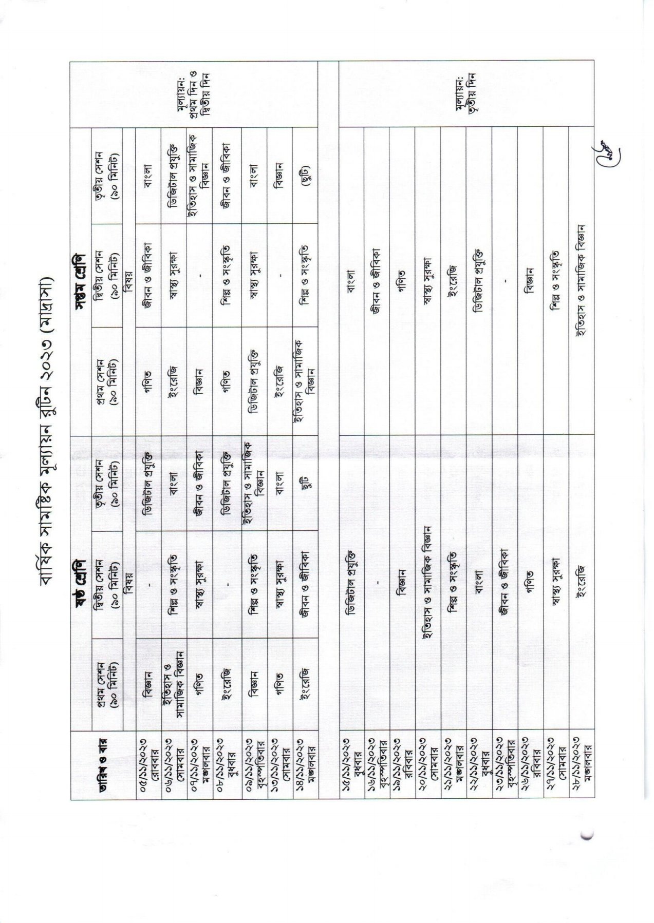 ৬ষ্ঠ ও ৭ম শ্রেণির বার্ষিক সামষ্টিক মূল্যয়ন রুটিন