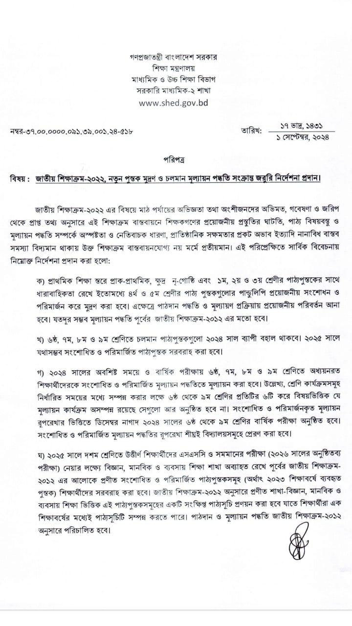 মাধ্যমিকে আবারও বিজ্ঞান, মানবিক ও ব্যবসায় শিক্ষা বিভাগ ফিরছে